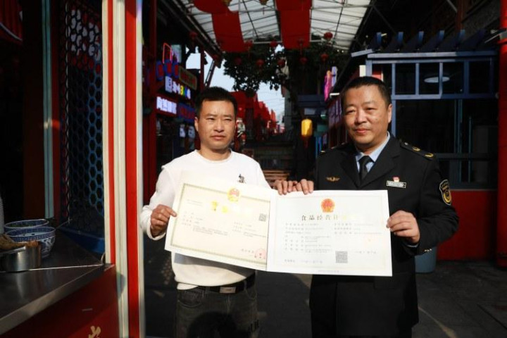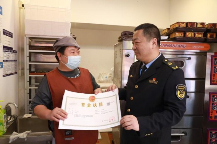 1月23日,“渝味360碗陶然居国潮美食街区”正式开街。入驻的商户由于需要办理工商营业执照和食品经营许可证,江北区市场监管局通过提前走访得知商户的需求后,承诺商户,只要准备好办证需要的相关身份证原件、复印件、店铺的场地证明文件(房产证或土地证复印件),租赁合同原件和复印件证件相片一张等相关证明,就能预约上门办理证照。